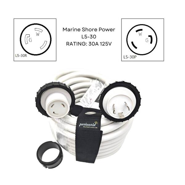 50 ft. 10/3 30 Amp 125-Voolt Twist Lock NEMA L5-30 RV/Maine Shore Power Cordsets, Outdoor Boat Extension Cord, White