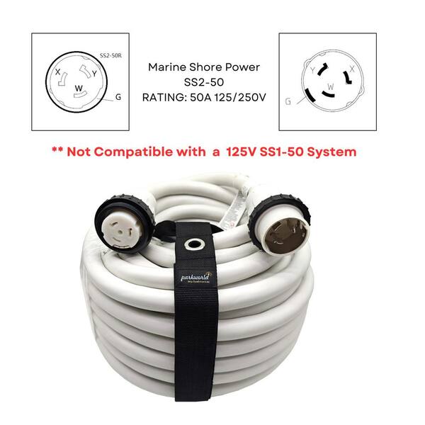 50 ft. 6/4 50 Amp 125/250-Volt Twist Lock SS2-50 Maine Power Cordsets Outdoor 50 Amp Marine/Boat Extension Cord, White