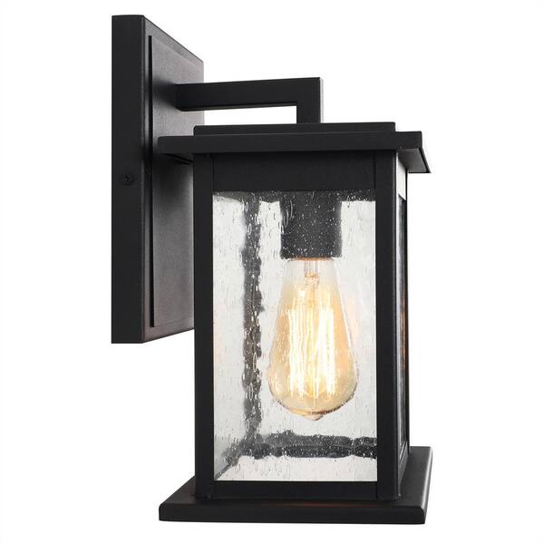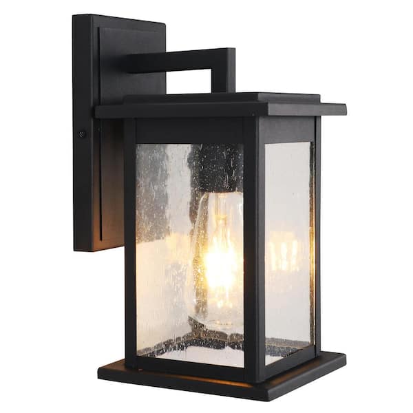 11.75 in. 1-Light Black Outdoor Hardwired Wall Lantern Scone with Clear Seeded Glass