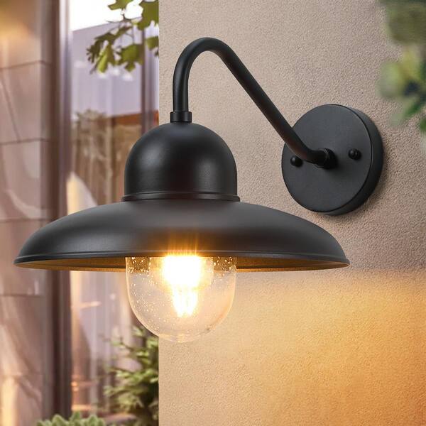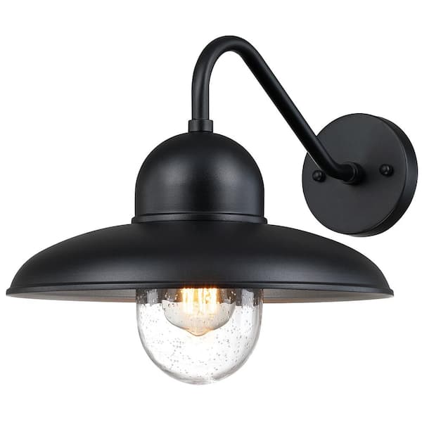12 in. 1-Light Outdoor Black Hardwired Barn Wall Sconce with Clear Seed Glass Shade with No Bulbs Included