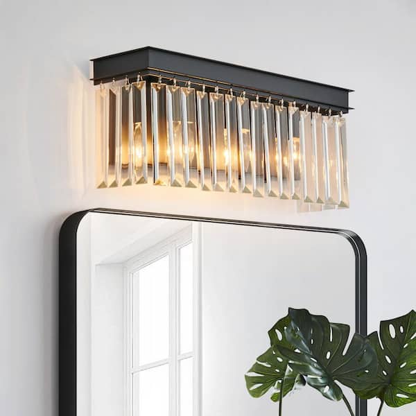 15 in. 3-Light Black Bathroom Vanity Light Wall Light Fixtures Over Mirror with Clear Crystal Shade