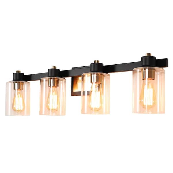 31.5 in. 4-Light Matte Black and Gold Bathroom Vanity Light with Clear Glass Shades