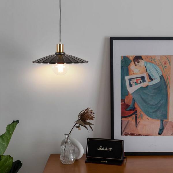 Farmhouse 1 Light Matte Black Shaded Pendant Light with Metal Shade, No Bulbs Included
