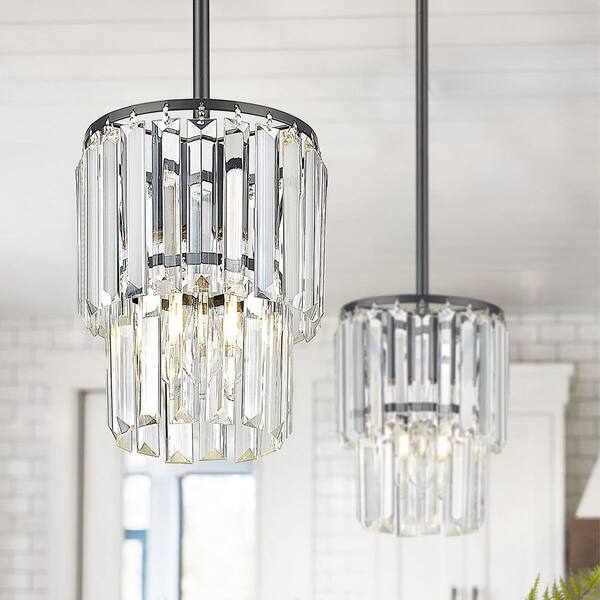 Modern 1 Light Matte Black Pendant Light with Clear Crystal