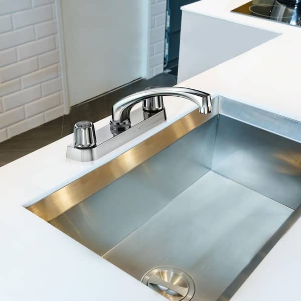 Double Canopy Handle Deck Mount Standard Kitchen Faucet in Chrome, Gerber Compatible