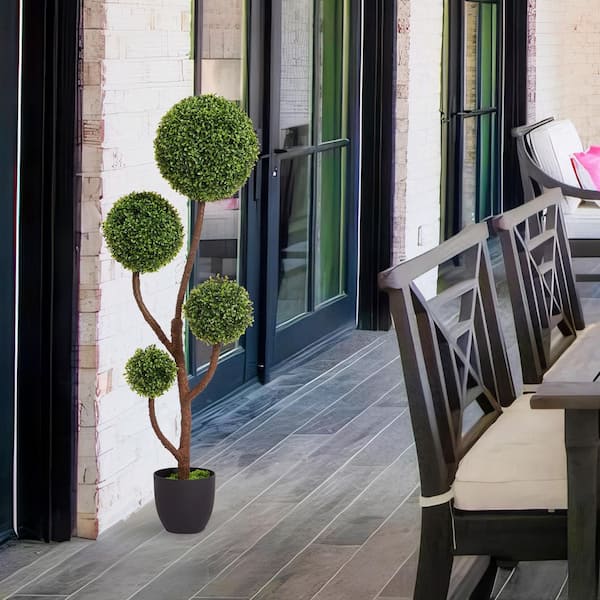 4 ft. Artificial Boxwood Tree Four Ball Topiary Trees in Pot