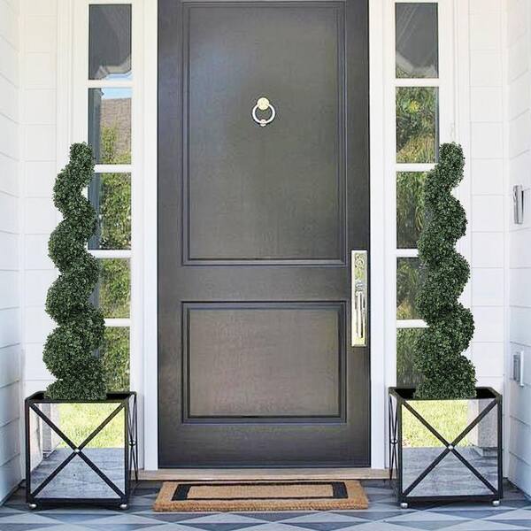 48 in. Green Artificial Boxwood Topiaries in Pot 2-Pack