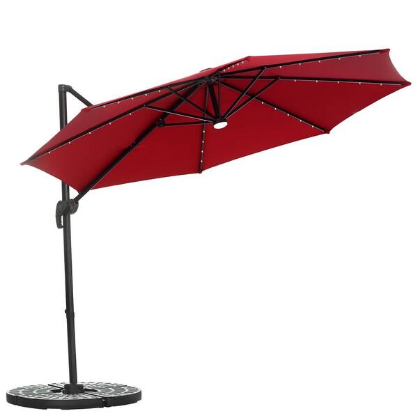 10 ft. Solar LED Patio Cantilever Umbrella with Crank in Red