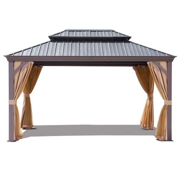 Be the first to ask a question for JOYSIDE 10 ft. x 14 ft. Aluminum Outdoor Double Galvanized Steel Roof Gazebo with Ceiling Hook, Mosquito Netting and Curtains