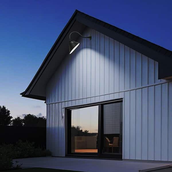 Questions and Answers for Cedar Hill 10 in. 42-Watt, 4000 Lumens LED Black Angle Shade Gooseneck Barn Light with Photocell, Outdoor Sign Light