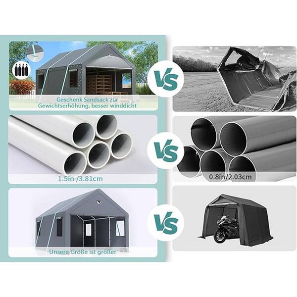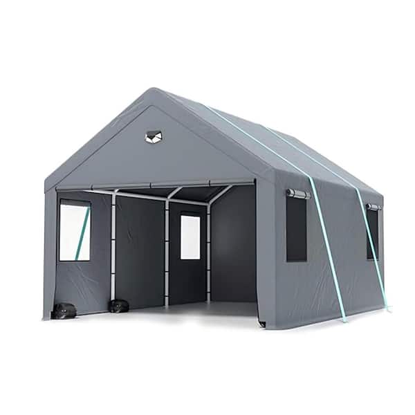 12 ft. W x 20 ft. D x 9.4 ft. H Gray Heavy Duty Metal Carport with Roll-up Windows and All-Season Tarp Cover
