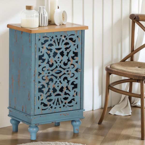 Be the first to ask a question for PHI VILLA 19 in. Blue Hollow-Carved MDF Modern Buffet Sideboard With Solid Wood Legs