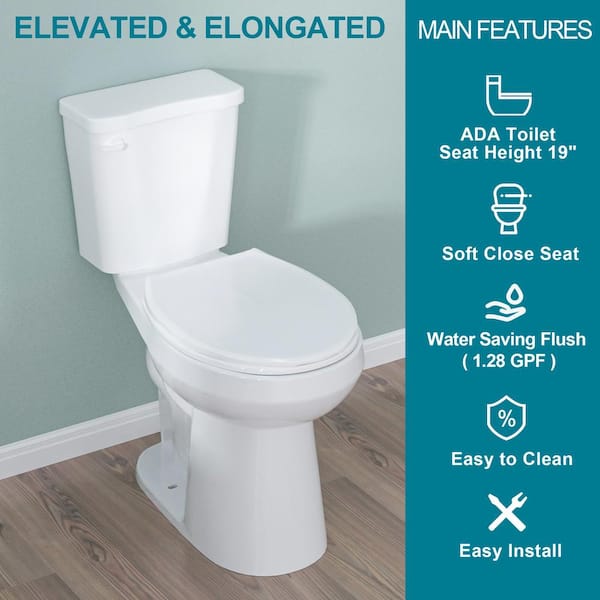 Questions and Answers for HOMLYLINK 19 in. Tall 2-Piece Toilet 1.28 GPF Single Flush Elongated Toilet in White Map Flush 1000g with Soft-Close Seat