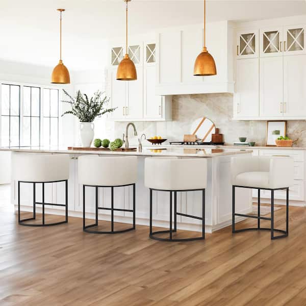 Be the first to ask a question for LUE BONA 26 in. Antique-White Low Back Bar Stool with Black Metal Frame Counter Height Faux Leather Counter Stool (Set of 4)