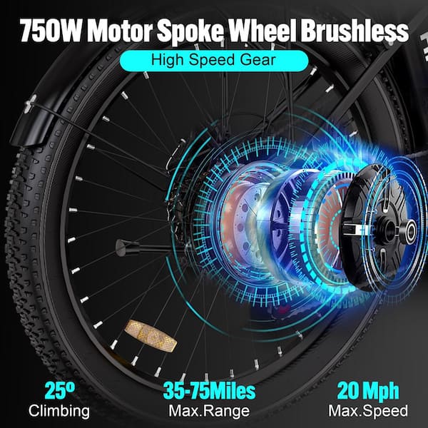 Questions and Answers for 26 x 3 in. Fat Tire Mountain and Commuter Electric Bike for Adults with 750W/48V/14Ah Ebike with Removable Battery