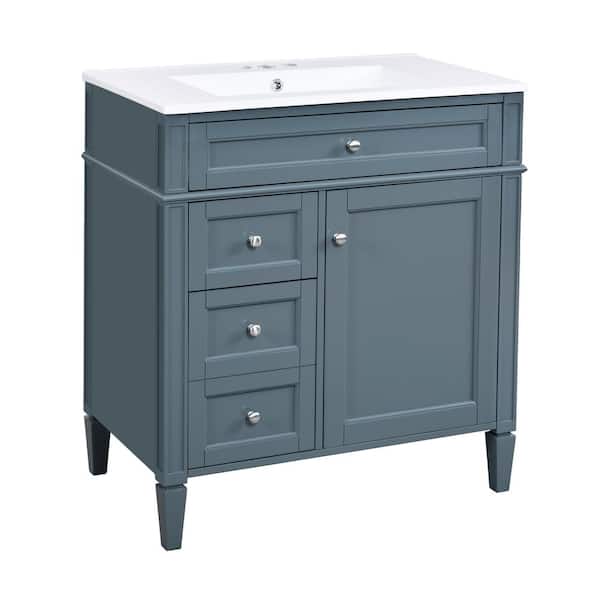Questions and Answers for Virubi 30 in. W Single Sink Bath Vanity in Blue with White Ceramic Top, Adjustable Shelf and Drawers