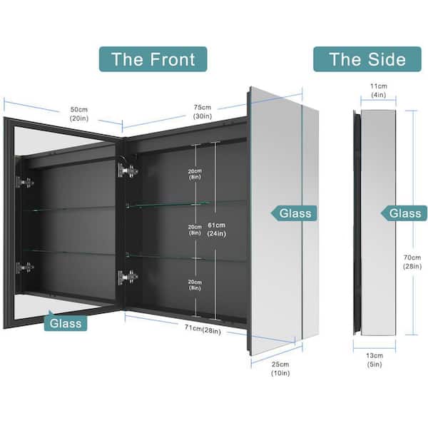 Questions and Answers for 30 in. W x 28 in. H Large Rectangular Silver Wall Mount LED Lighted Medicine Cabinet with Mirror