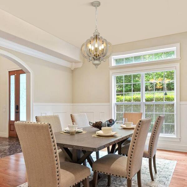 5-Light Gold Wood Rustic Antique Farmhouse Chandelier for Kitchen Island Dining Room