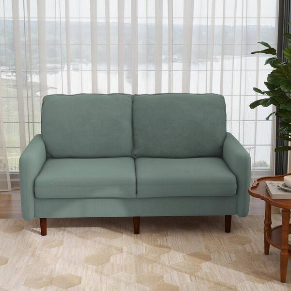 Be the first to ask a question for Uixe 56.90 in. Greyish Cyan Velvet Upholstered 2-Seater Loveseat Sofa with Wood Legs