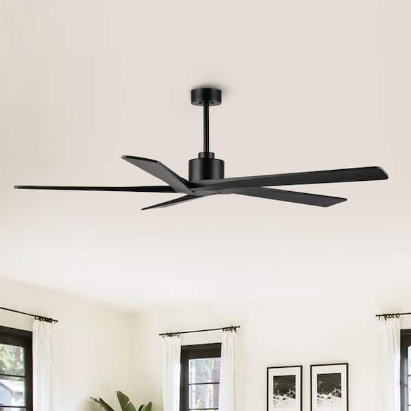 Questions and Answers for MLiAN 64 in. DC Indoor Black Ceiling Fan without Lights, 5 Reversible Carved Solid Wood Blades Remote Control