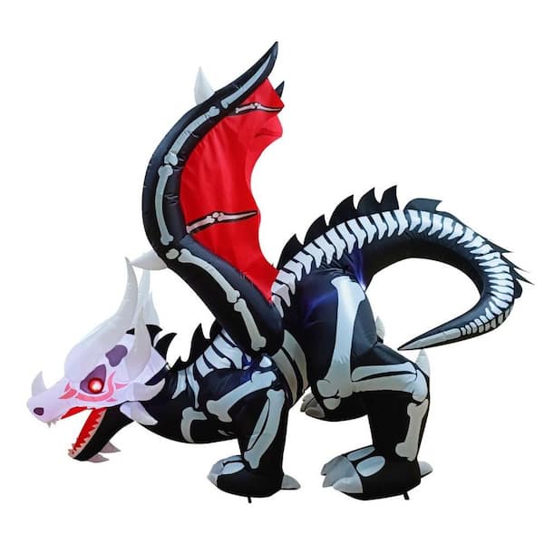8 ft. Tall Black, White and Red Vinyl Crouching Dragon Skeleton Inflatable