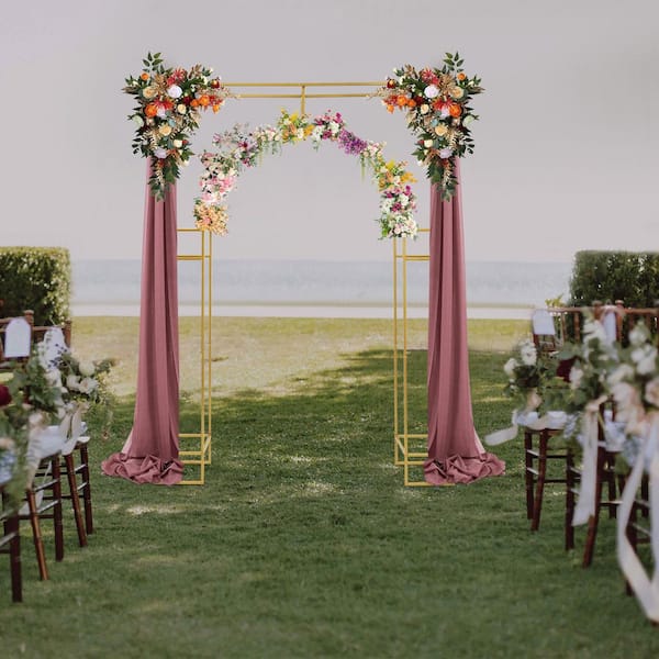 Questions and Answers for YIYIBYUS 94.5 in. x 70.9 in. Gold Metal Wedding Arch Backdrop Stand Background Decoration Garden Arbor Frame