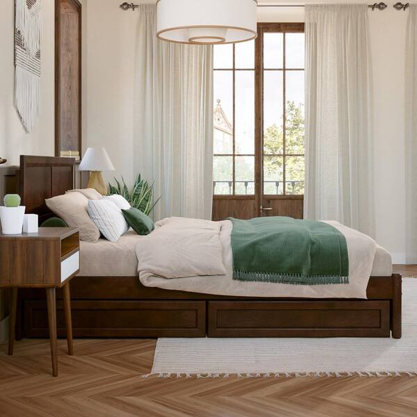 Questions and Answers for AFI Lylah Walnut Brown Solid Wood Frame Full Platform Bed with Panel Footboard and Storage Drawers