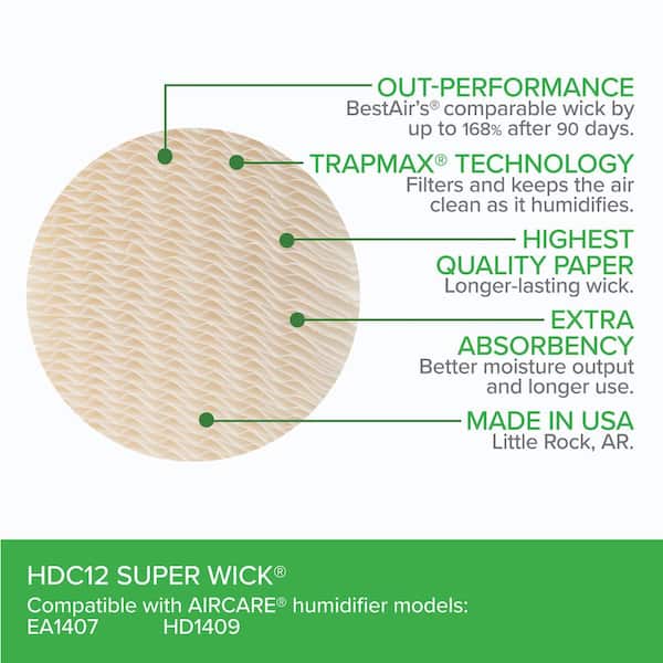 - AIRCARE Super Wicks® from quality paper for absorbency & humidity