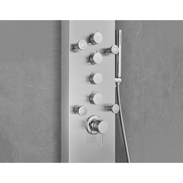 Questions and Answers for AKDY 65 in. 8-Jet Shower Panel System in Stainless Steel with Adjustable Rainfall Shower Head, Handshower Wand and Tub Spout
