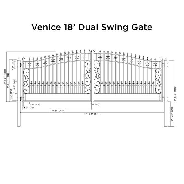 Questions and Answers for ALEKO Venice Style 18 ft. x 6 ft. Black Steel Dual Driveway Fence Gate