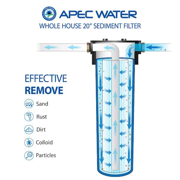 Questions and Answers for APEC Water Systems All Purpose 1-Stage Whole House Water Filtration System With 4.5 x 20 in. Reusable and Washable Pleated Sediment Filter