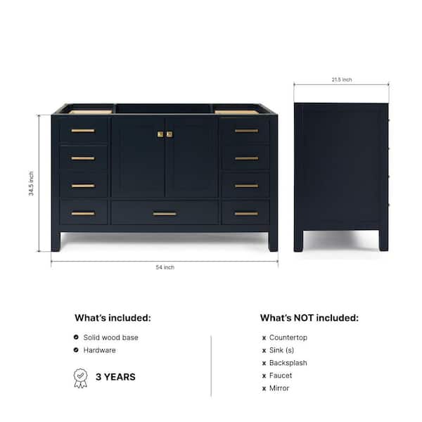 Be the first to ask a question for ARIEL Cambridge 54 in. W x 21.5 in. D x 34.5 in. H Freestanding Bath Vanity Cabinet Only in Midnight Blue