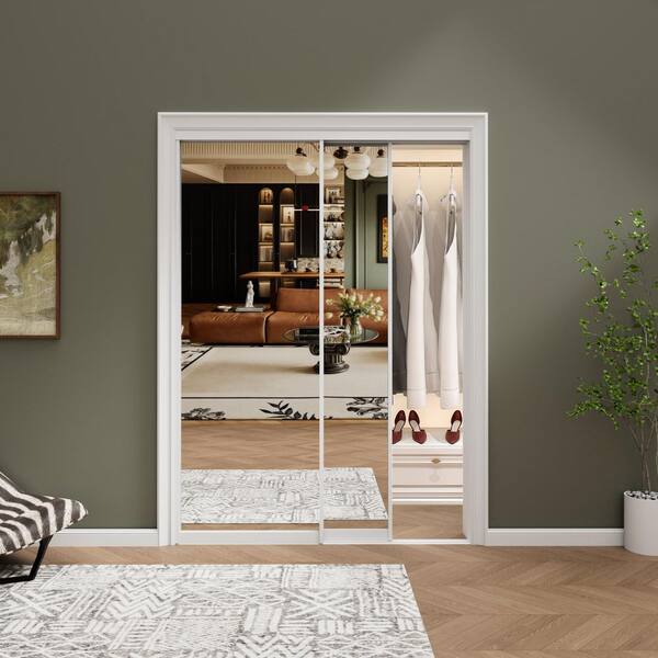 Questions and Answers for ARK DESIGN 48 in. x 80 in. 1-Lite Mirrored Glass and Aluminum Frame Finished Closet Sliding Door with Hardware Kit