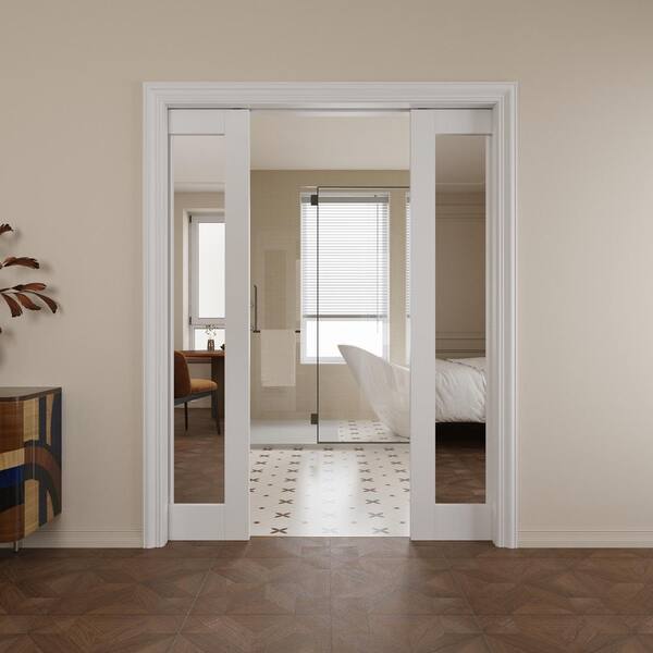 Questions and Answers for ARK DESIGN 64 in. x 80 in. 1-Lite White Mirrored Glass Primed MDF Wood Pocket Sliding Door with Pocket Door Frame and Hardware Kit