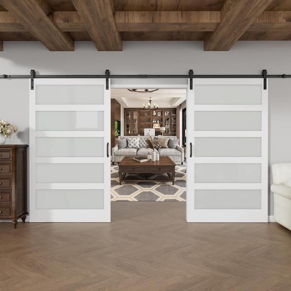 Questions and Answers for ARK DESIGN 96 in. x 84 in. 5-Equal Lites with Frosted Glass White MDF Interior Sliding Barn Door with Hardware Kit