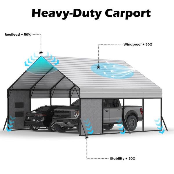 Questions and Answers for AURA OUTDOOR 20 ft. W x 20 ft. D Galvanized Steel Carport, Heavy Duty Car Canopy and Shelter, Fixed Carport