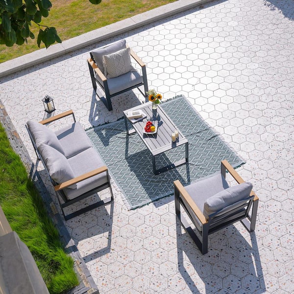 Questions and Answers for AURA OUTDOOR Outdoor 4-piece Aluminum Patio Conversation Sets Outdoor Furniture with Coffee Table and Gray Cushions