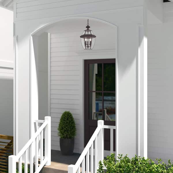 Questions and Answers for AVIANCE LIGHTING Aston 21 in. 3-Light Bronze Dimmable Outdoor Pendant Light with Clear Beveled Glass and No Bulbs Included
