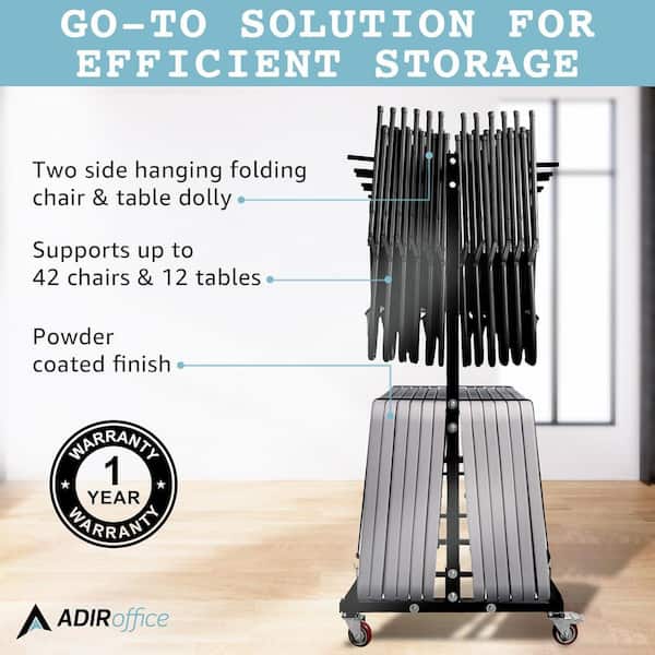 Be the first to ask a question for AdirOffice 65 in x 33.7 in. x 67 in. Steel 600lb Capacity Folding Chair and Table Combo Cart in Black