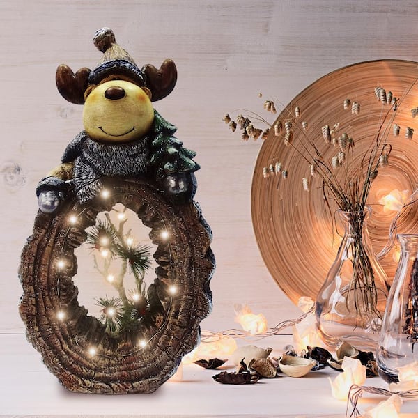 - Rustic carved wood look reindeer statue adds holiday cheer
