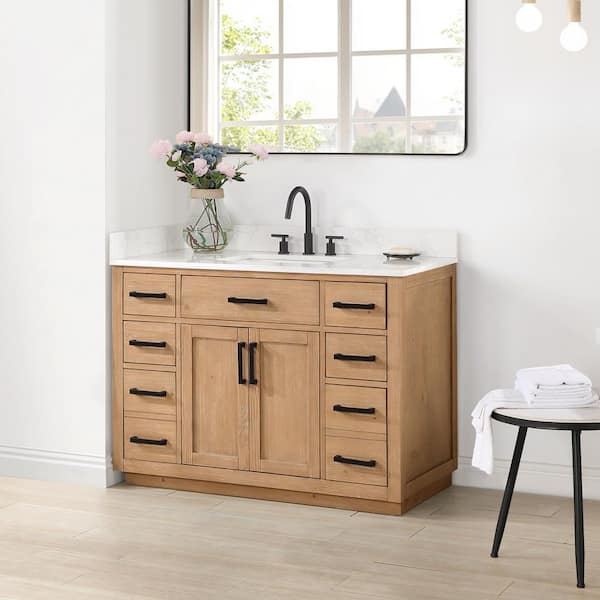 Questions and Answers for Altair Gavino 48 in. W x 22 in. D x 34 in. H Bath Vanity in Light Brown with Grain White Composite Stone Top