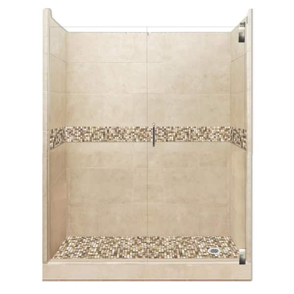 Roma Grand Hinged 42 in. x 60 in. x 80 in. Right Drain Alcove Shower Kit in Brown Sugar and Satin Nickel Hardware