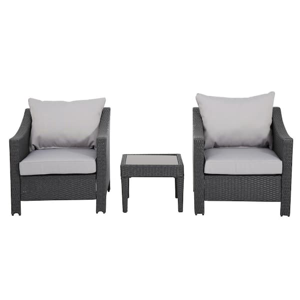 Questions and Answers for Noble House Antibes Grey 3-Piece Faux Rattan Outdoor Patio Conversation Set with Silver Cushions