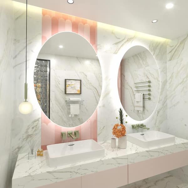 Questions and Answers for Apmir 22 in. W x 30 in. H Oval Frameless Super Bright LED Backlighted Anti-Fog Wall Bathroom Vanity Mirror