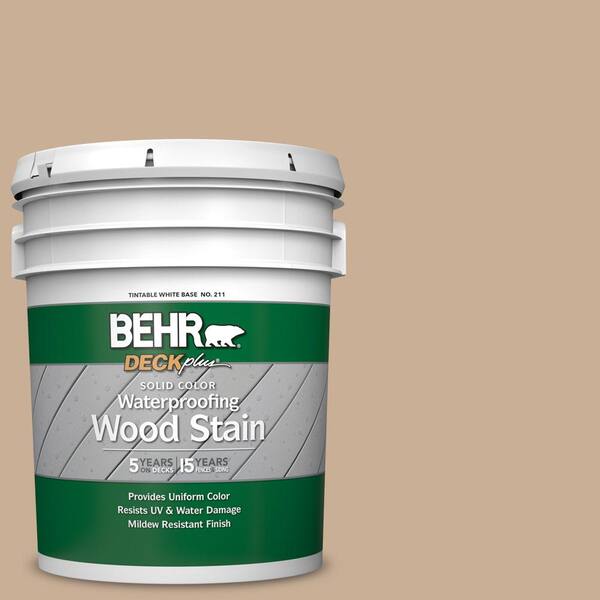 Be the first to ask a question for BEHR DECKplus 5 gal. #N260-3 Polo Tan Solid Color Waterproofing Exterior Wood Stain