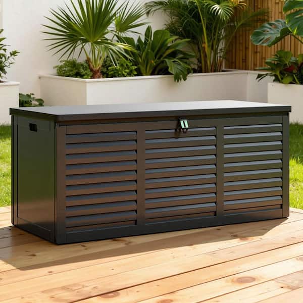 Questions and Answers for BTMWAY 130 Gal. Black Upgraded Resin Deck Box, Outdoor Storage Box Waterproof with Hydraulic Rod and Side Handle, Lockable