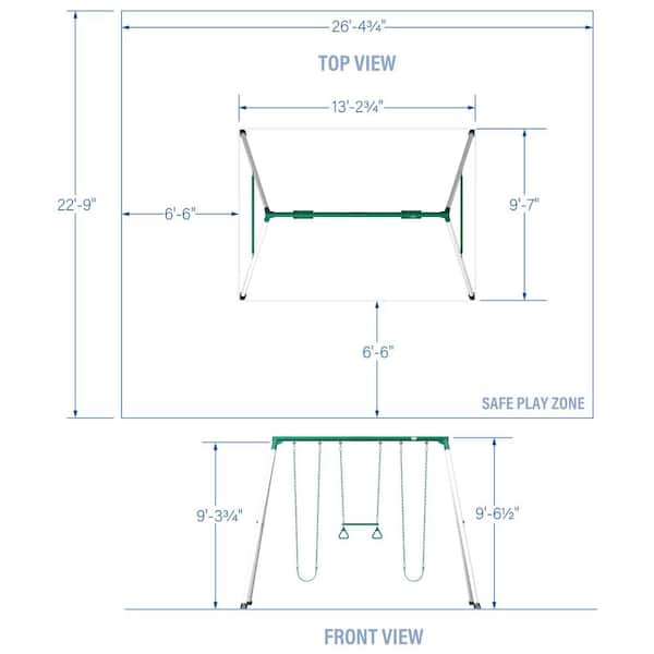 - 2 belt swings and 1 trapeze bar provide sky-high adventures