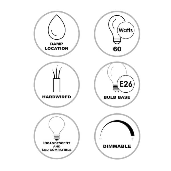 - Uses (2) 60W E26 incandescent or LED light bulbs, not included
