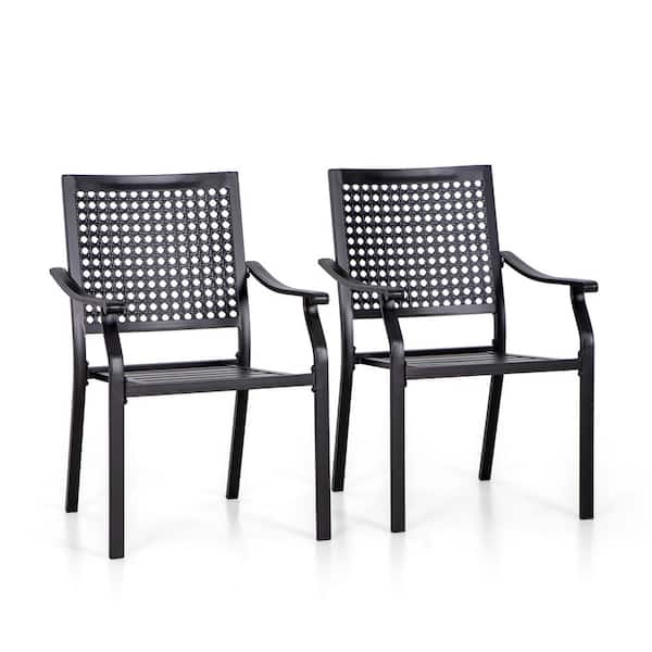 Questions and Answers for PHI VILLA Black Stackable Stripe Metal Patio Outdoor Dining Chair (4-Pack)