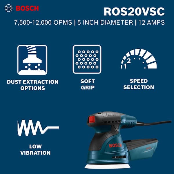 Questions and Answers for Bosch 2.5 Amp 5 in. Corded Variable Speed Random Orbital Sander/Polisher Kit with Carrying Bag